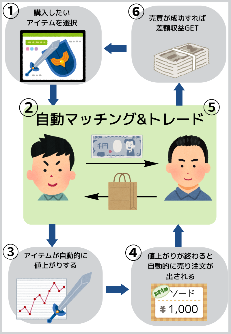 アイテムは原則値上がりする仕組みになっています。