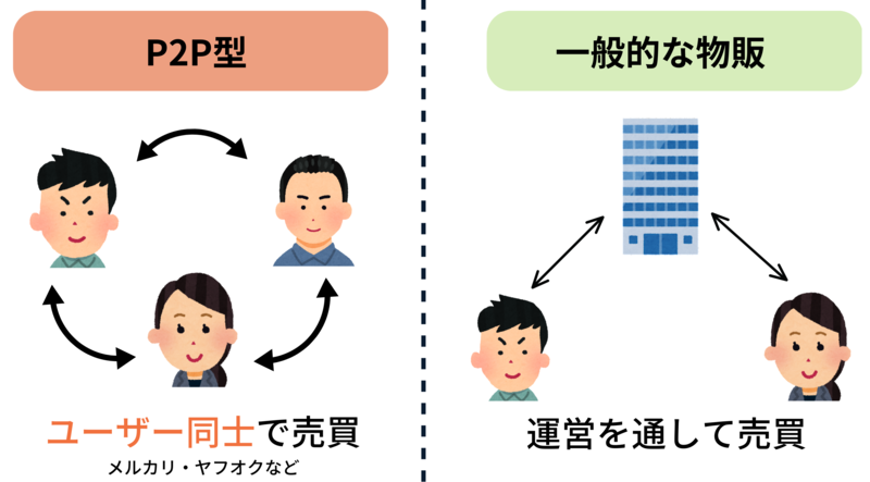 店とユーザーが売買をするのではなく、ユーザー同士で売買をするビジネスのことです。